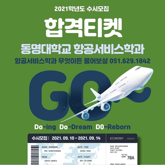 동명대학교 항공서비스학과 합격티켓 받아 가세요..