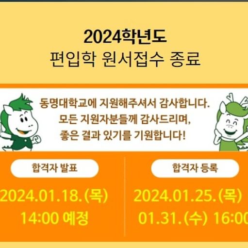 [공지] 2024학년도 동명대학교 수시모집 등록자 입학안내