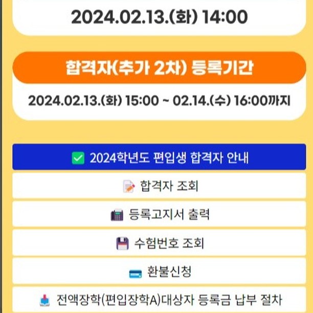 2024 편입학 추가 합격자 등록안내(마감 2월13일 오후 2시~2월14일 오후 4시)