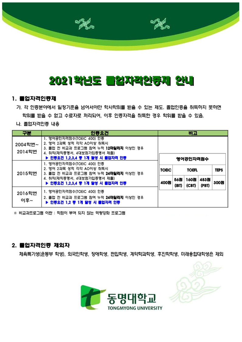 2022년 2월 졸업예정자졸업자격인증 미충족자 지도 및 인증서류 제출 안내