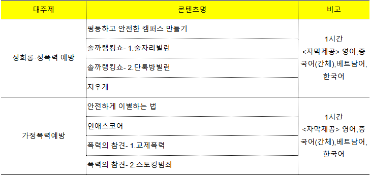 라. 교육내용 : 성폭력 · 가정폭력 예방교육 각 4편, 총 8편