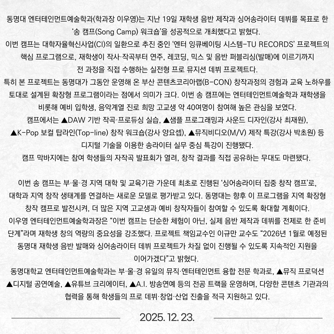 동명대, ‘고교생과 함께하는 K-POP 컴퓨터 작곡수업’ 성료