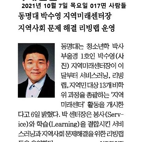 우리 동명대학교 미래융합대학에서 운영하는 지역미래센터가