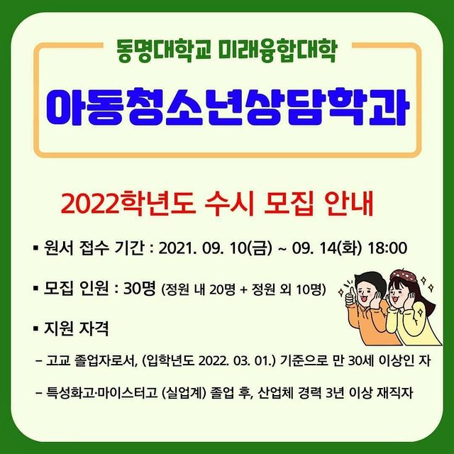 <2022학년도 동명대학교 미래융합대학 아동청소년상담학과 신입생 모집안내>