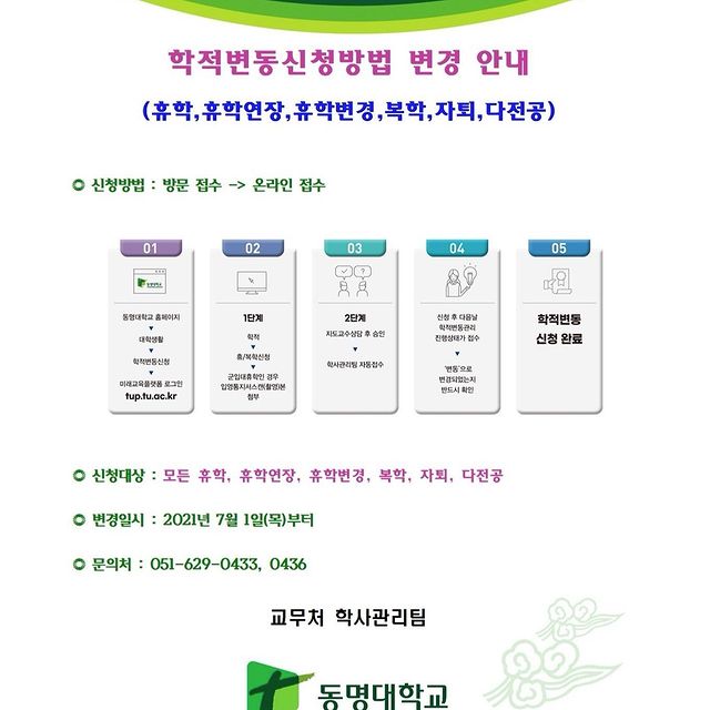 학적변동신청방법 변경 안내 (휴학, 복학, 자퇴, 다전공)