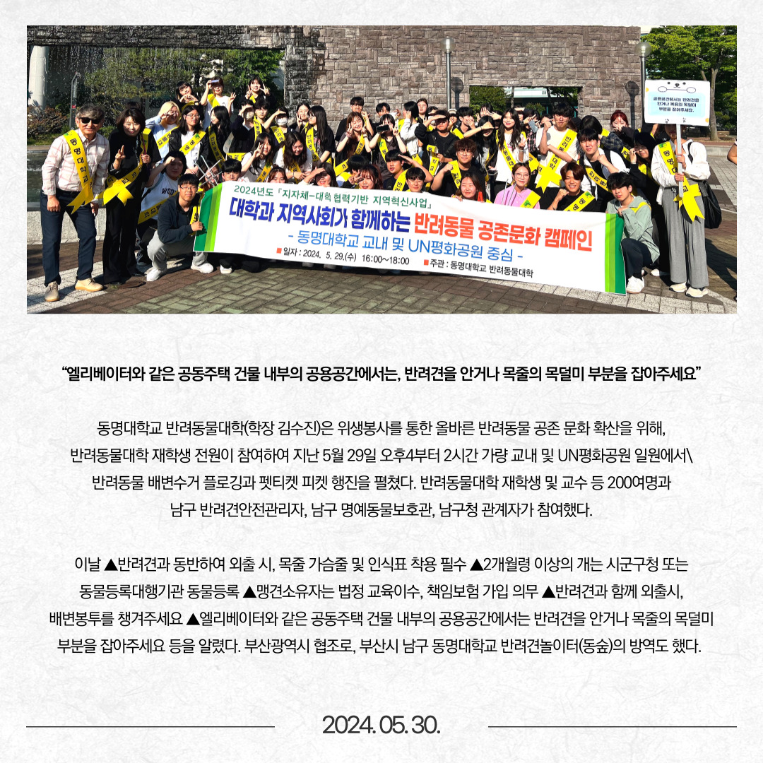 동명대 반려동물대학 재학생 전원 등 200여명, 반려동물공존문화캠페인