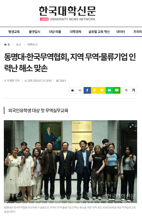 Many Korean newspapers report on "International Trade Practice Training Course" on GB department.