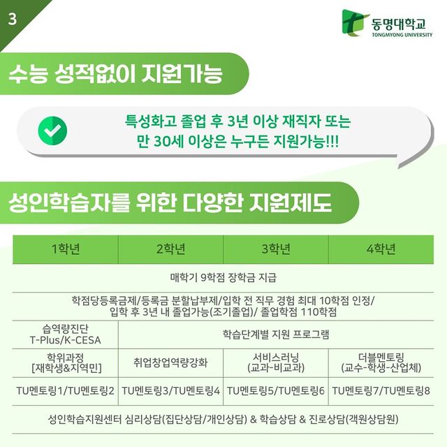 선명상치유학과에서는 조건을 충족시 미래융합대학 입학생 전원에게 평생학습자장학금이 주어집니다.