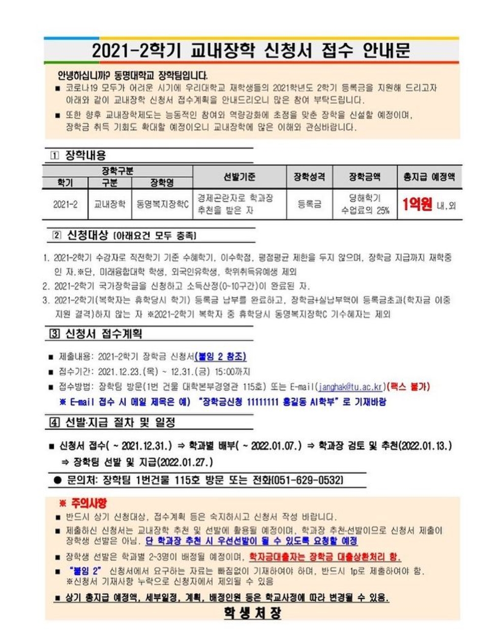교내 장학 신청(등록금 지원)