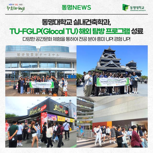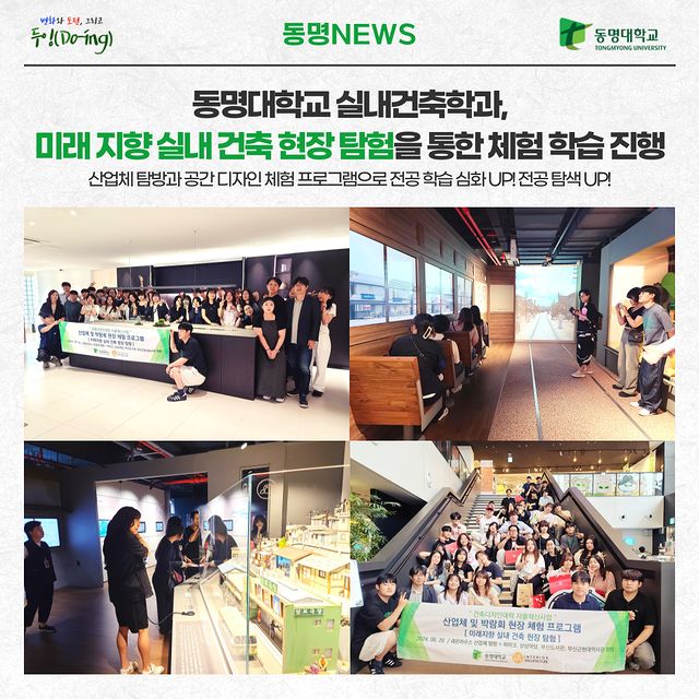 • 제 21 회 동명대학교 실내건축학과 졸업작품전시회 제 21 회 동명대학교 실내건축학과 졸업작품전시회 개최 ! 부산디자인진흥원에서 졸업작품전을 진행하게 되었습니다. 어느해 보다 수준 높은 작품과 학생들의 열정으로 만들어낸 실내건축 공간 디자인 결과물을 전시회를 통하여 선보이는 자리입니다. 2025년의 졸업작품 전시 주제는 Sensory Intensity: 공감각적 경험입니다. 다양한 학생들의 아이디어와 공간 디자인에 대한 접근성을 볼 수 있는 의미있는 전시 입니다. 졸업 작품 전시회에 많은 관심 부탁드립니다. ^^ 동명대학교 실내건축학과는 경쟁력 있고 우수한 학생 작품으로 가득합니다. VIEW DETAIL