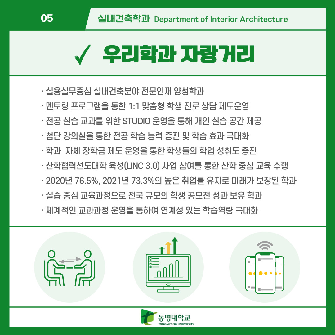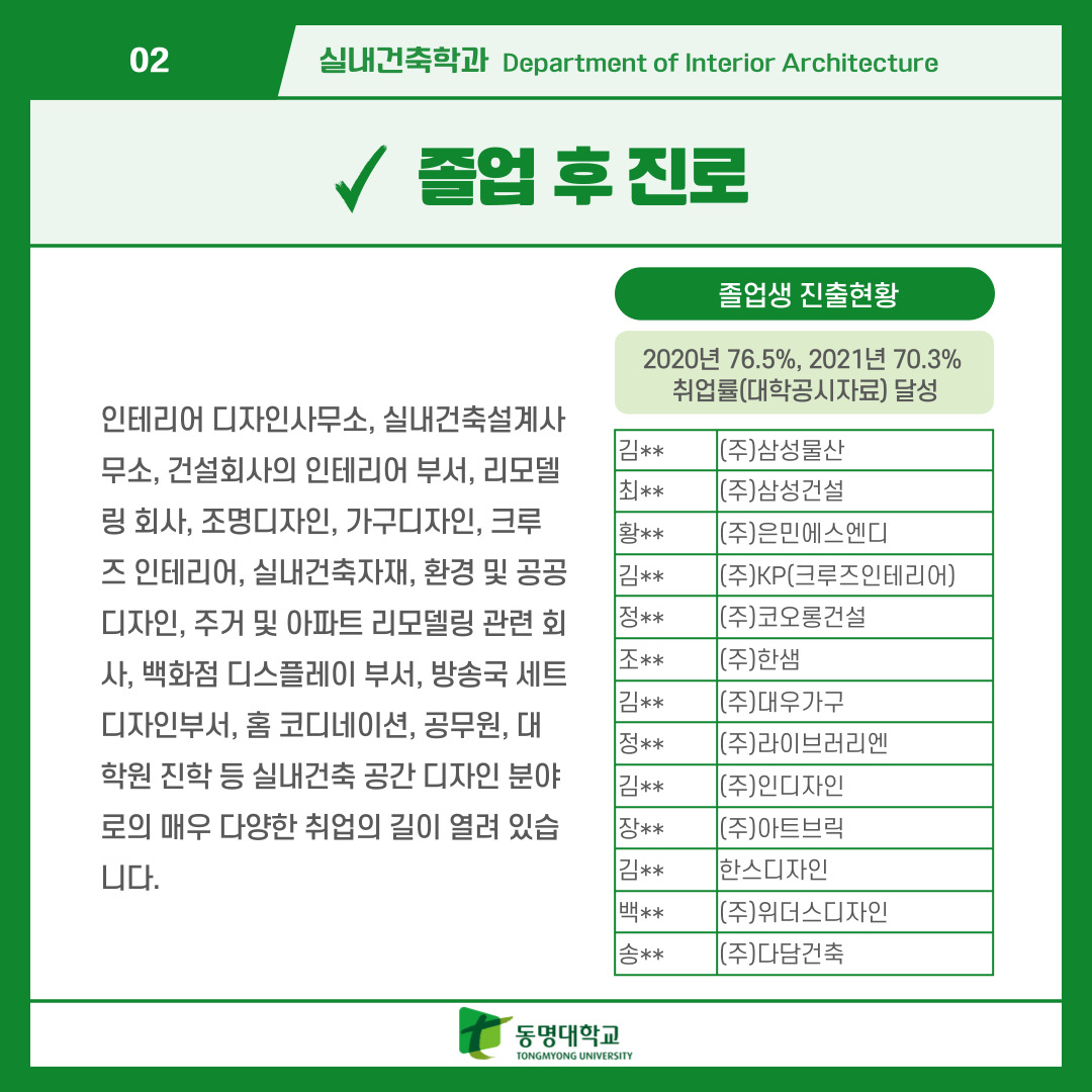 | 2006. 03 | 동명대학교 건축대학 실내건축학과 대학명변경 |