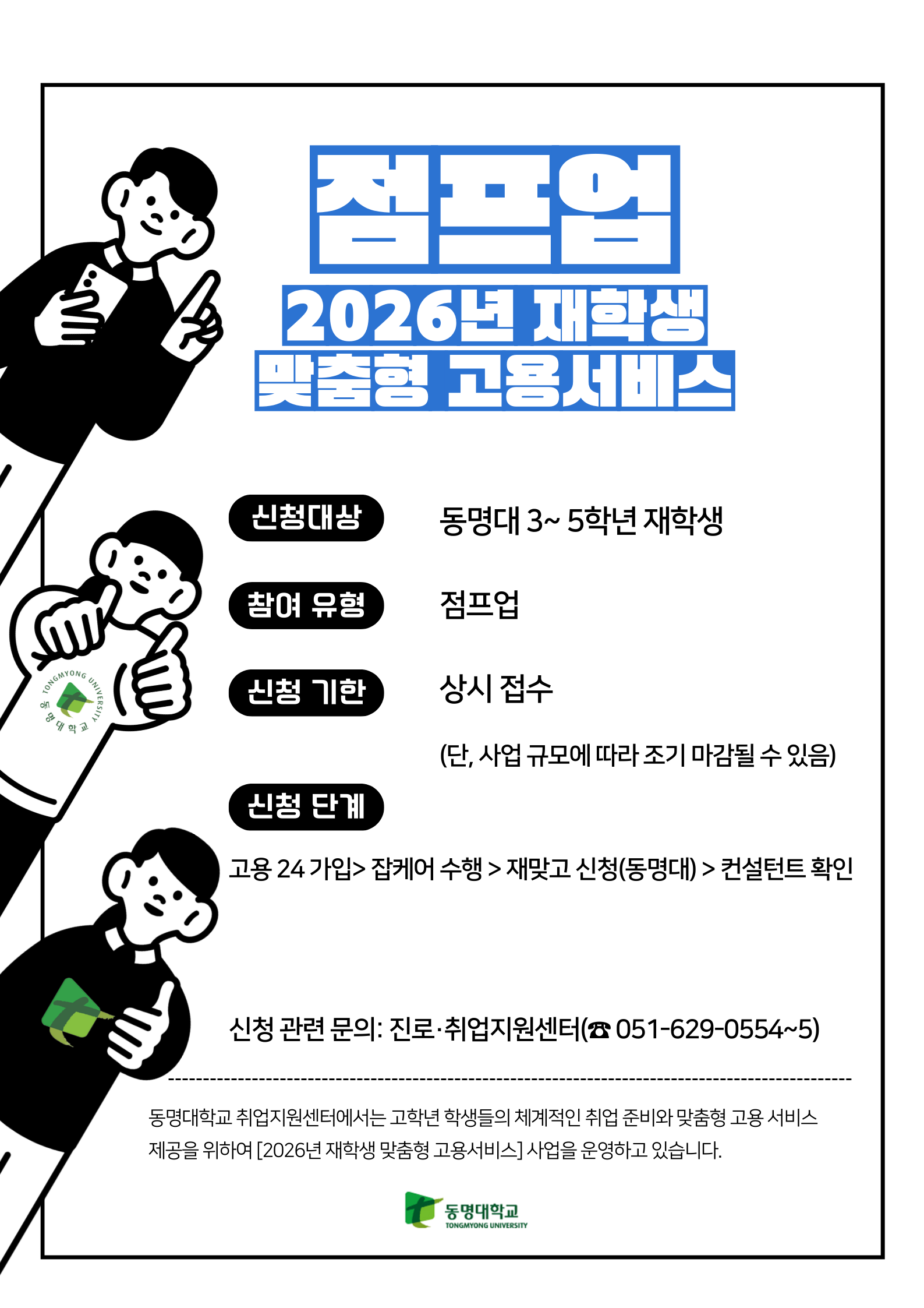 [점프업] 2026-1학기 재학생 맞춤형 고용서비스 사업 참여(신청) 방법 안내
