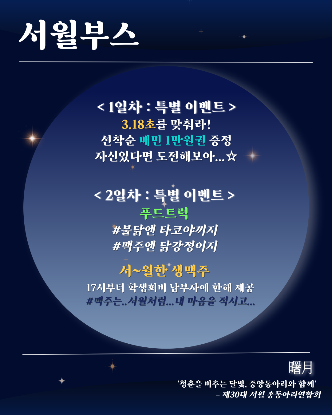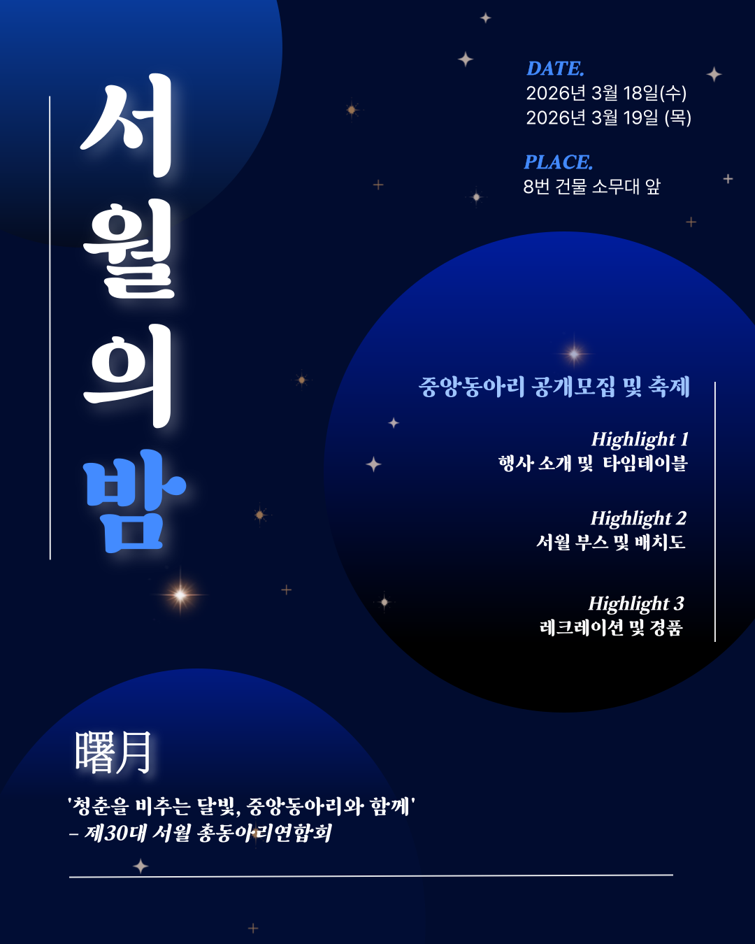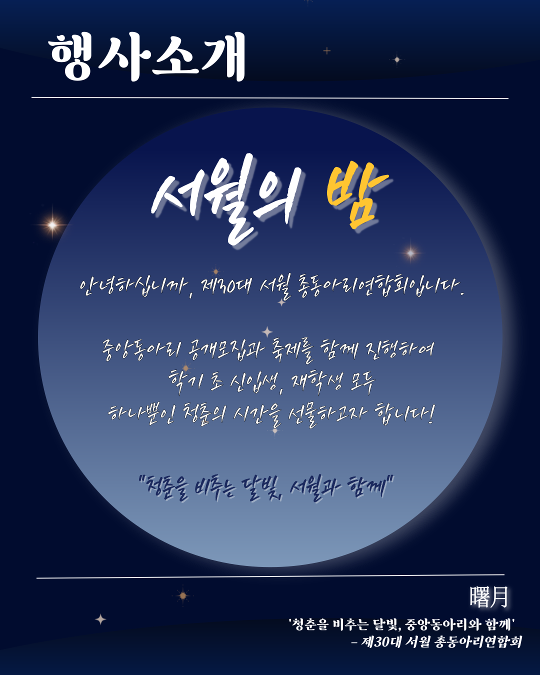 이번 중앙동아리 공개모집은 ‘서월의 밤’과 함께 진행되는 다채로운 행사입니다.