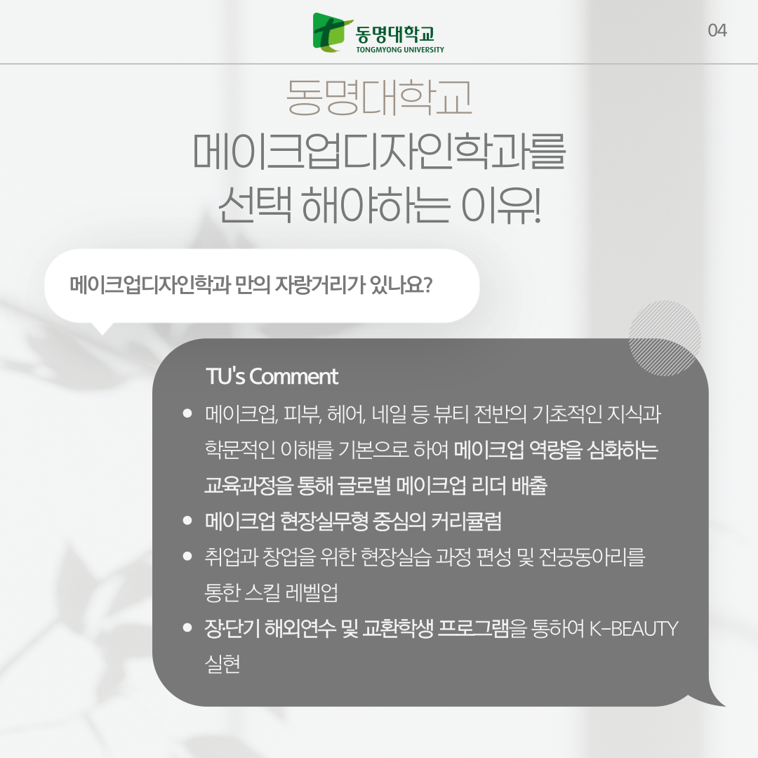 동명대학교 메이크업디자인학과를 소개합니다.