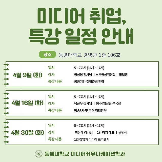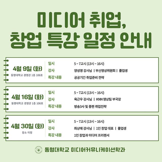 미디어커뮤니케이션학과의 새로운 소식을 전합니다.