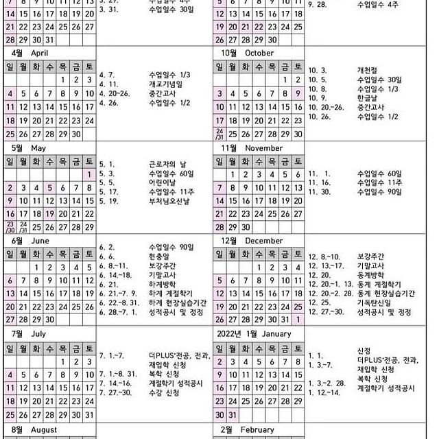 위 학사일정을 참고하여 활기찬 학교 생활을 즐기시기 바랍니다. 감사합니다.