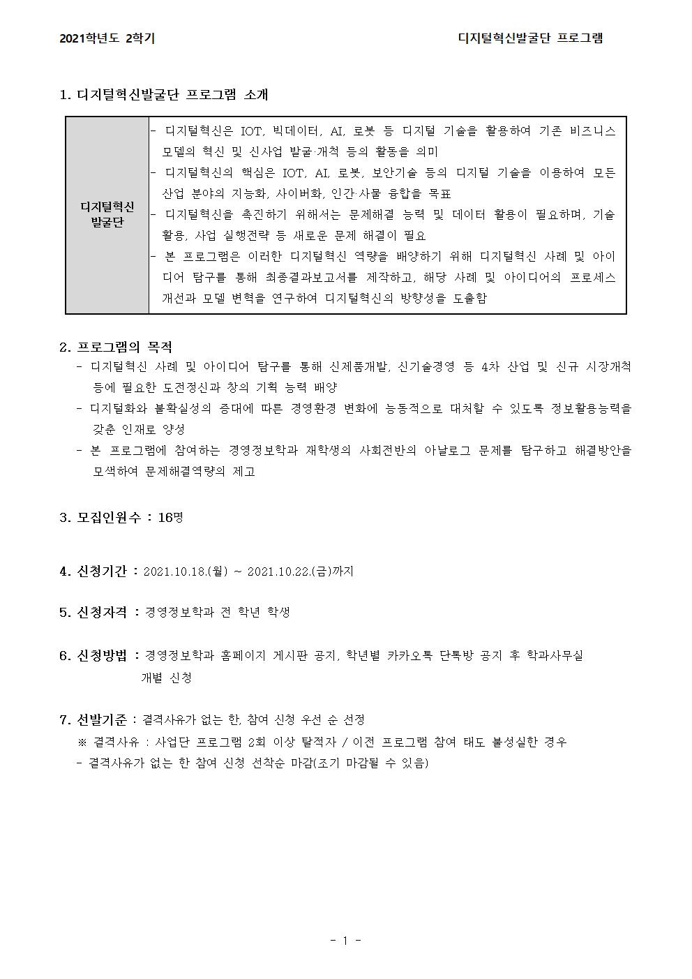 2021학년도 2학기 취업사유 공인출석인정 신청 안내