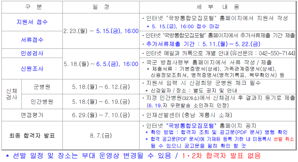 ㅇ 선발일정