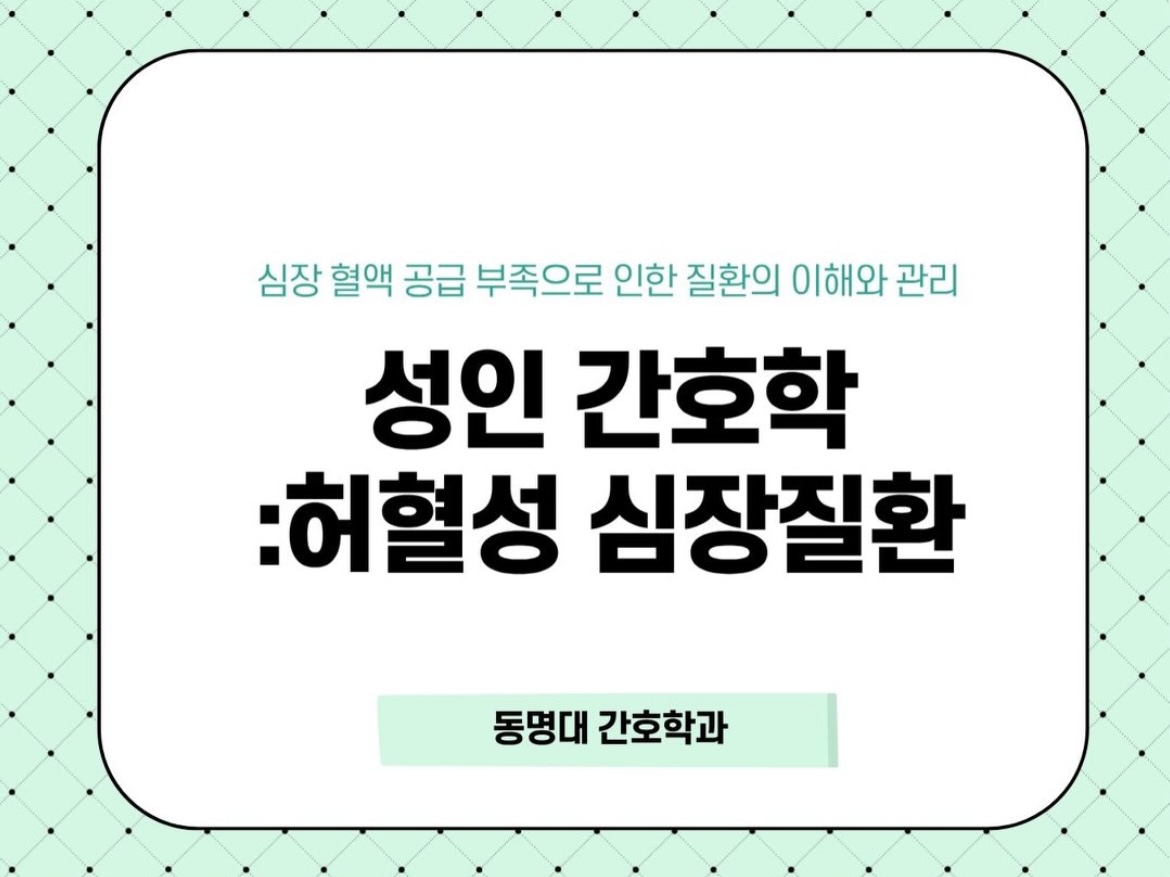 성인간호학 핵심 요약! 동명대 간호학과가 준비한 카드뉴스로 완벽하게 정리해 보세요. 📖✨