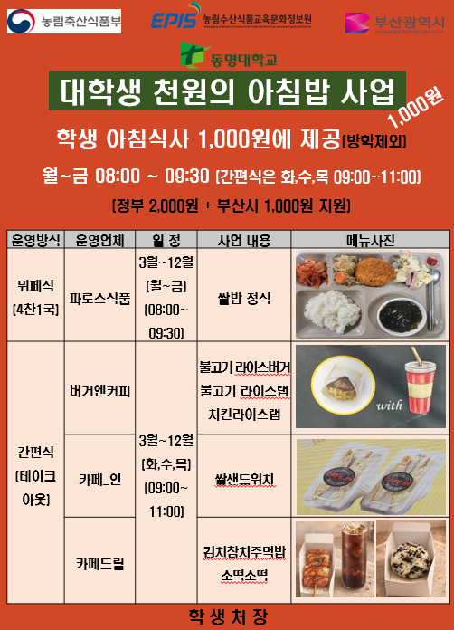 [2026학년도 대학생 천원의 아침밥 사업에 따른 아침밥 이용 안내]