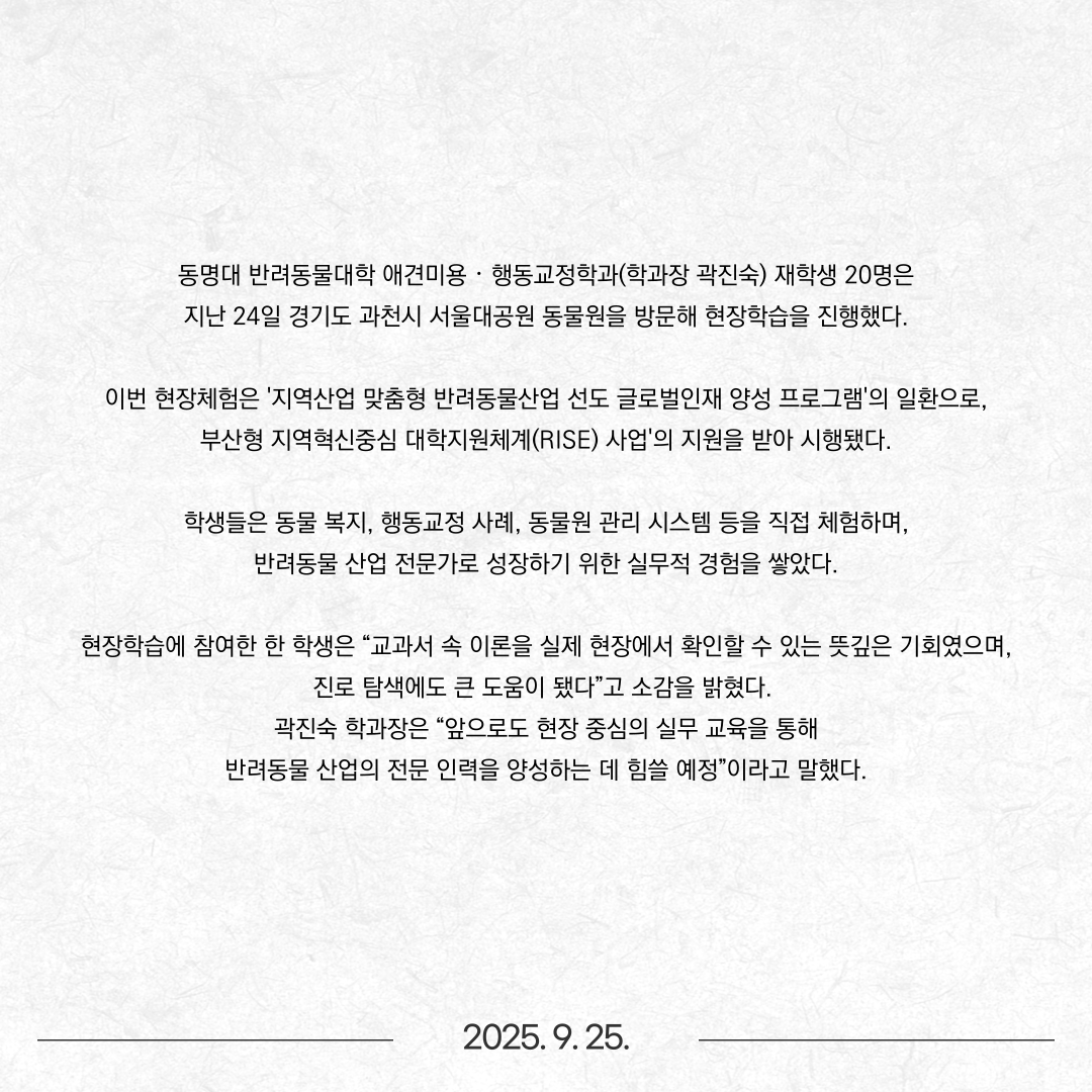 애견미용‧행동교정학과, 서울대공원 동물원 현장학습