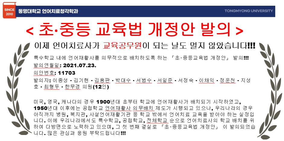 언어치료청각재활학과의 새로운 소식을 전합니다.