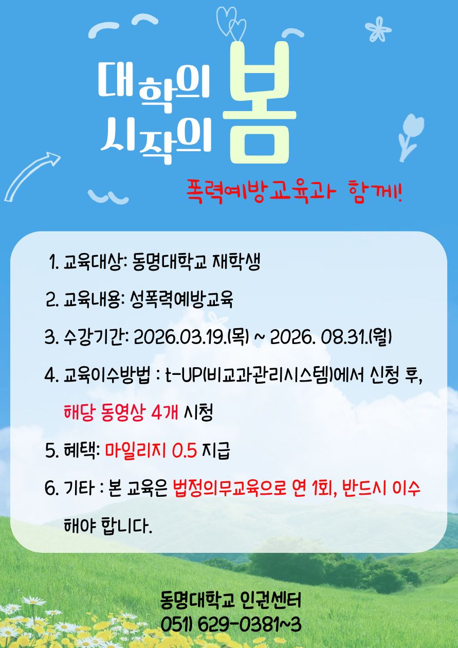 [법정의무]2026년 재학생(대학원생 포함) 폭력예방교육 이수 안내