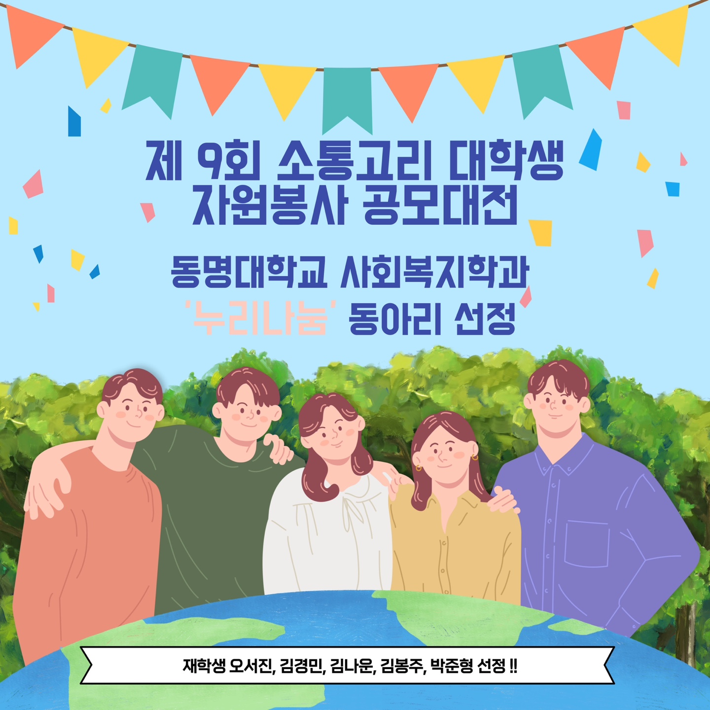제9회 소통고리 대학생 자원봉사 공모대전 수상〈지역 내 취약계층 아동을 대상으로 창작 및 실천 기회 제공을 통한 지역사회 환경인식 향상 프로그램 "환경을 누리고 온기 / 온정을 나누리"〉