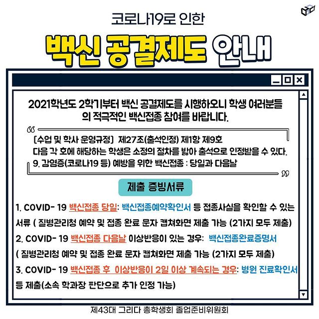 ✔️학우분들의 적극적인 백신 접종 참여를 위해 백신 공결제도를 시행합니다.