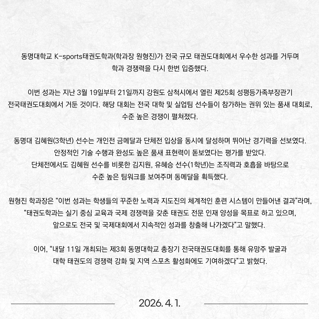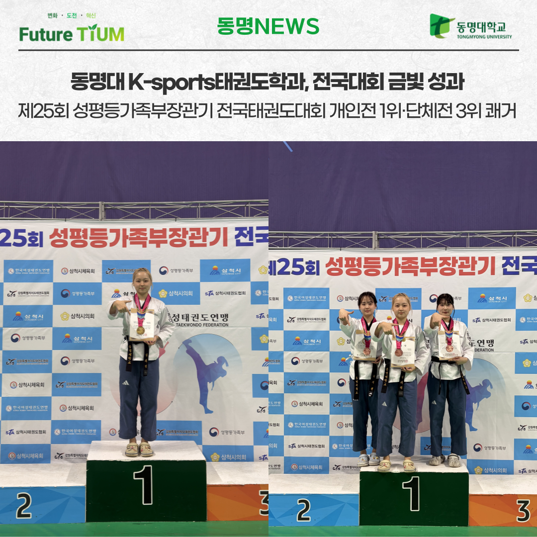 동명대 K-sports태권도학과, 전국대회 금빛 성과